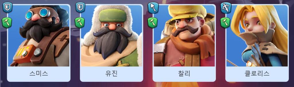 2티어 영웅은 총 4명으로 스미스, 유진, 찰리, 클로리스가 있습니다.
