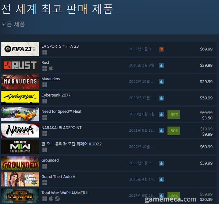 사이버펑크 2077은 연 4회 이상의 스팀 세일이 적용되는 타이틀 중의 하나입니다.