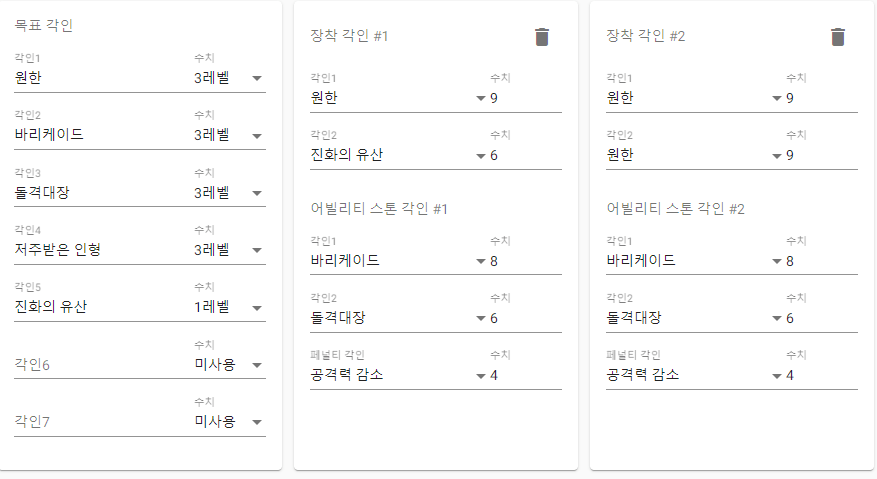 아이스펭이 ‘어떻게 세팅할지’를 안내해주는 역할이라면, 로스트빌드는 ‘현재 세팅이 얼마나 강한지’를 확인하는 도구에 가깝죠.