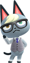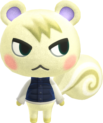 다람쥐 종족의 주민으로, 눈이 반쯤 감긴 듯한 시크한 표정과 세련된 외모가 특징입니다.