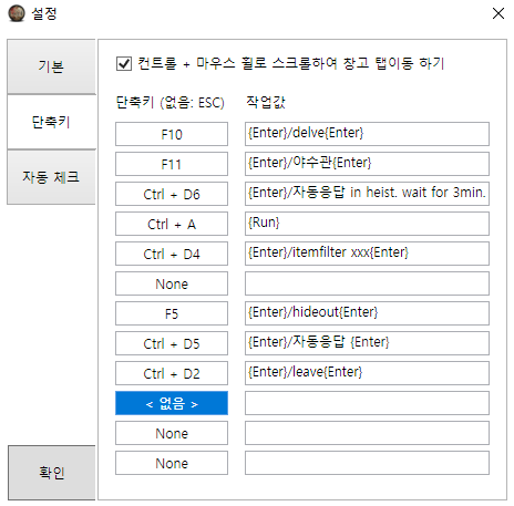 POE2에서는 /hideout, /exit, /kick 등 다양한 명령어를 자주 사용하게 되는데요. 오버울프는 이러한 명령어를 단축키로 지정해 자동 실행할 수 있는 기능을 제공합니다. 예를 들어, F1 키를 누르면 바로 은신처로 이동하거나, F2 키로 파티원을 강퇴하는 등 반복적인 작업을 손쉽게 처리할 수 있습니다. 이 기능은 특히 스트리머나 고속 플레이 유저들에게 유용하며, 전투 중에도 빠르게 명령을 실행할 수 있어 게임 흐름을 끊지 않고 플레이할 수 있습니다.