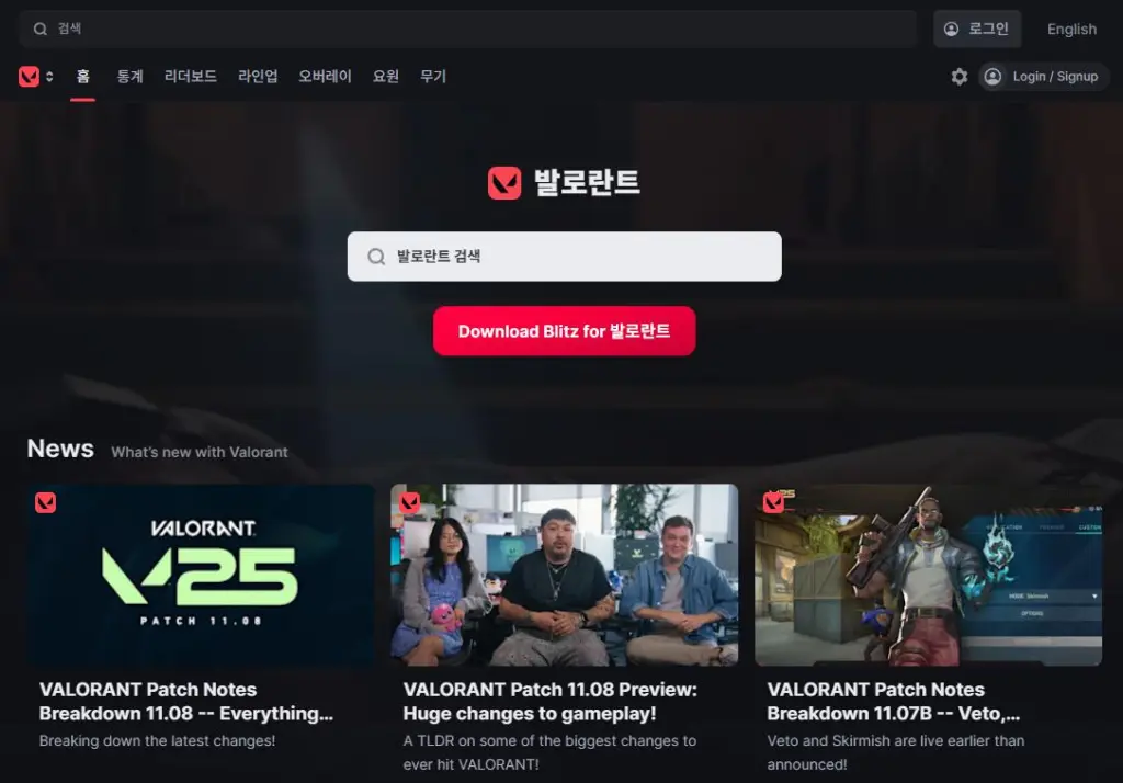 Blitz는 발로란트 전적 검색을 위한 전용 프로그램으로 웹 사이트가 존재하지만 별도로 설치가 필요합니다.