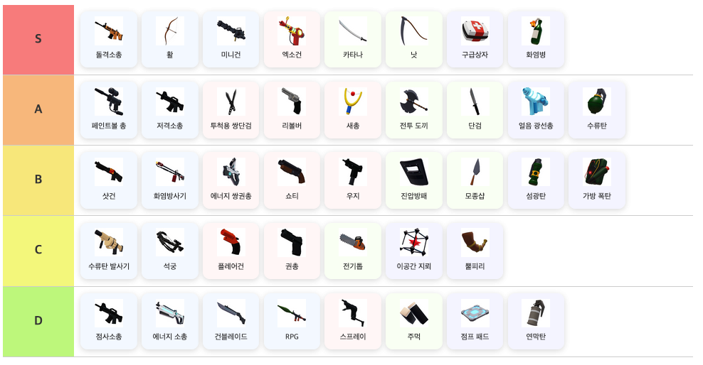 로블록스 라이벌 무기 티어 등급 표