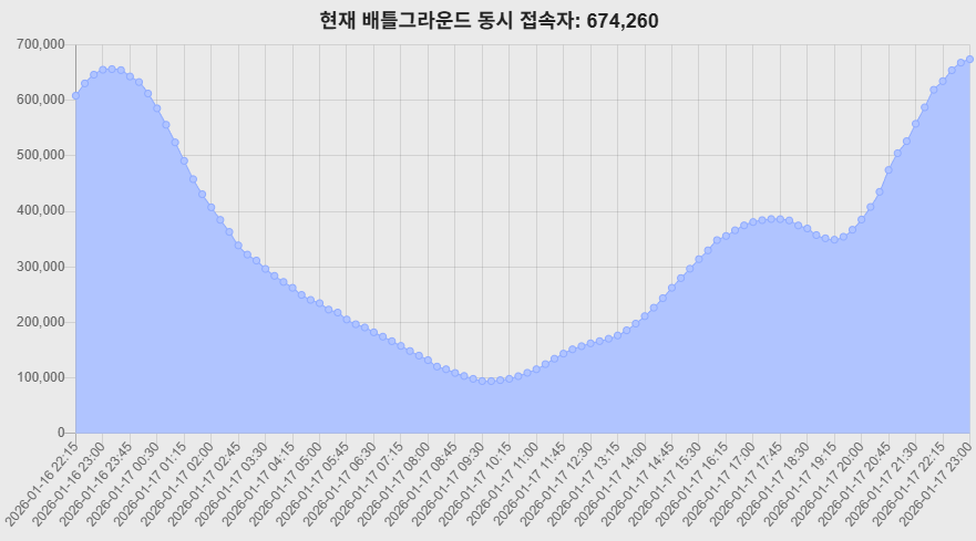 배그 지지에서는 위 이미지와 같이 동시접속자 수에 대한 안내를 제공하고 있는데요.