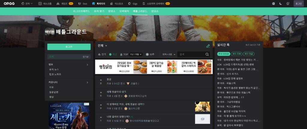 배그 OP.GG의 경우, 다른 배그전적검색 사이트와는 구별되는 커뮤니티 기능 또한 눈에 띄는 편입니다.