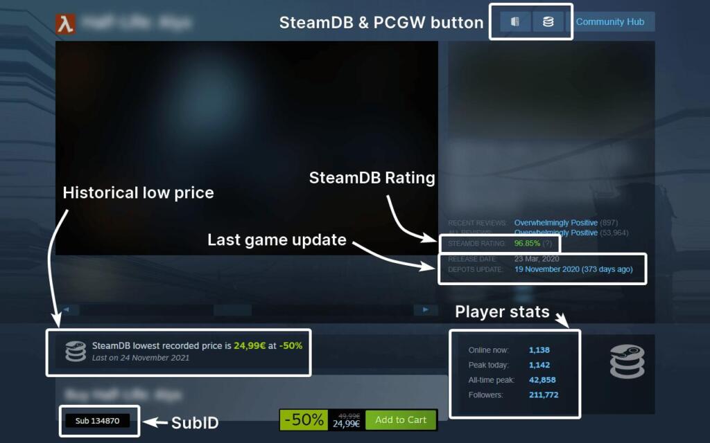 별도의 외부 사이트를 이용하지 않고도 스팀 내에서 정보를 얻는 방법도 존재합니다.